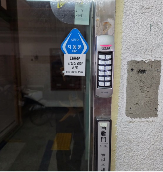 자동문센서는 작동안하고 AUTO 자동문열림버튼과 번호키.카드키만 작동